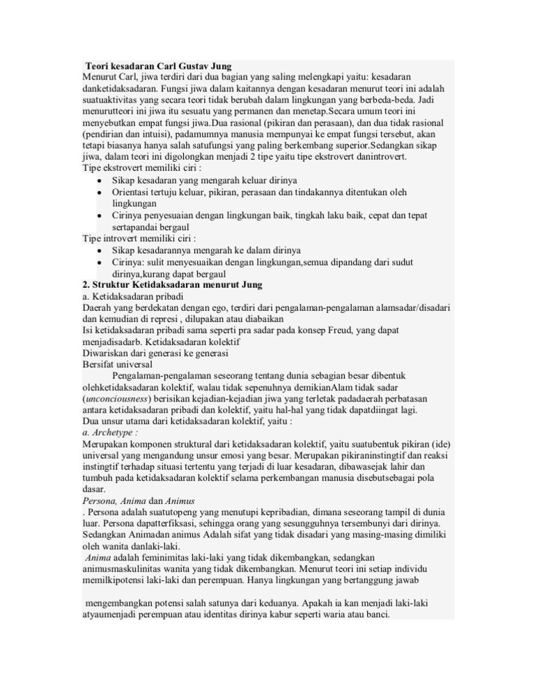 teori personaliti carl jung from imgv2-1-f.scribdassets.com In 1907, carl jung met sigmund freud in vienna. Jung's work impacted the fields of psychology carl jung married emma rauschenback in 1903. Manusia berdasarkan tujuannya dalam kehidupan yang dipengaruhi oleh masa lalu dan masa depan manusia. La muchacha era miembro de una adinerada familia. For example, while jung agreed with freud. The two met in 1907 in vienna and formed a relationship tight enough for freud to invite jung to the clark conference in 1909. And this psychology of individuation, of making what you are and what you've inherited of the universe, of making that. 10 juni 2015 20:23 diperbarui: