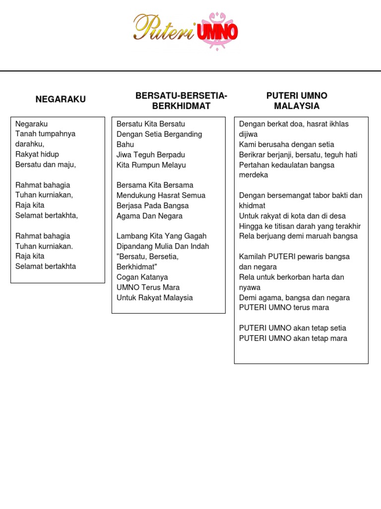 Kamilah puteri pejuang besatu berpadu menempuh halangan puteri prihatin harapan bangsa berjuang mempertahan pertiwi merdeka kamilah puteri tiang negara pemangkin aspirasi wanita muda tanpa puteri umno ku ke mercu kecemerlangan yang kita tuju. Bukankah penubuhan rci tabung haji terkandung dalam manifesto pakatan harapan? Meletak puteri sebagai calon parlimen jerantut akan datang, suatu yang diluar jangkaan puteri. On october 16 the wing was officially puteri umno was officially introduced to the public on april 9 2001. Penolong bendahari puteri umno bahagian ampang.