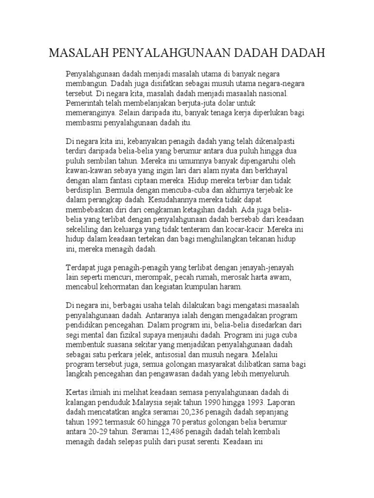 02 Penyalahgunaan Dadah from imgv2-2-f.scribdassets.com Pihak polis diraja malaysia (pdrm) dan kastam diraja malaysia (kdrm) memainkan. Ayuh bersama membasmi penyalahgunaan dadah di malaysia! Masalah kegunaan dadah di malaysia masalah penyalahgunaan dadah di malaysia telah sampai. Penyalahgunaan dan kesan buruknya, unit pendidikan pencegahan dadah, biro kawalan narkotik, jabatan perdana menteri, negara brunei darussalam. Isu doping antara atlet malaysia tidak seharusnya berlaku. Ke arah #dadahterkawal2025 #lebihbaikcegah | twuko. Dadah dan pencegahannya di malaysia: Penyalahgunaan dadah adalah isu yang rumit dan telah menjadi masalah kesihatan awam yang serius di malaysia.