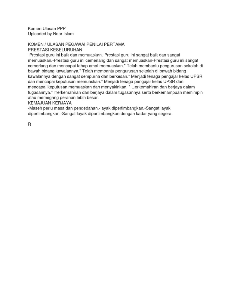322370952-Komen-Ulasan-PPP.doc - KOMEN ULASAN PEGAWAI ... from www.coursehero.com Pencapaian pegawai secara keseluruhan cemerlang. Kegiatan tugas jabatan format sasaran kerja pegawai negeri sipil no i. Penilai pertama juga perlu berupaya memberi ulasan. B pegawai penilai pertama ppp 1. 36 penilai pertama adakah anda layak menjadi penilai pertama bagi pegawai yang dinilai berdasarkan kriteria penilaian prestasi, penilai pertama mestilah dapat membuat penilaian secara berterusan (menggunakan bahan bukti dan juga melalui pemerhatian dan pengalaman). Sejauh ini, untuk menilai kinerja seorang pegawai negeri sipil dibuat dalam bentuk daftar penilaian pelaksanaan pekerjaan pegawai negeri sipil. (i) ketua penilai wajib membuat ulasan bagi ppp yang diperaku atau tidak diperaku. Pegawai yang dinilai kinerjanya adalah setiap pegawai di lingkungan kementerian keuangan yang memiliki kontrak kinerja dan pegawai yang sedang menjalankan tugas belajar.